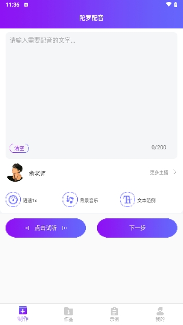 2、界面简单,步骤清晰,实现了文本输入、音调选择、音调调整等操作。
