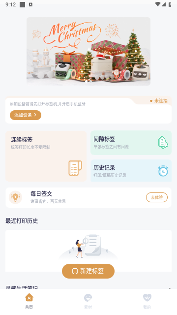 1、打开井井标记app连接设备后,点击下方的“新建纸条”