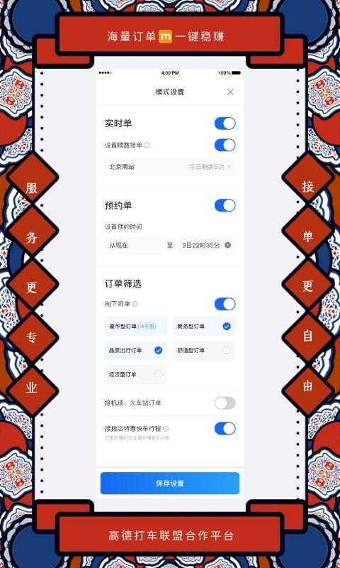 接单自由:接你想接,轻松设置接单模式。