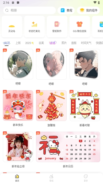1、客户端不断更新素材和小组件,紧跟网络潮流,确保你能随时获取最新的设计元素,保持手机界面的新鲜感。