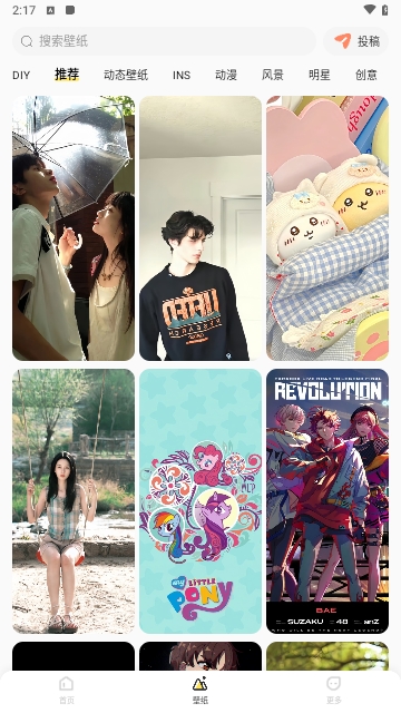 3、选在壁纸页面中,找到并点击“DIY壁纸”选项,进入DIY壁纸界面。