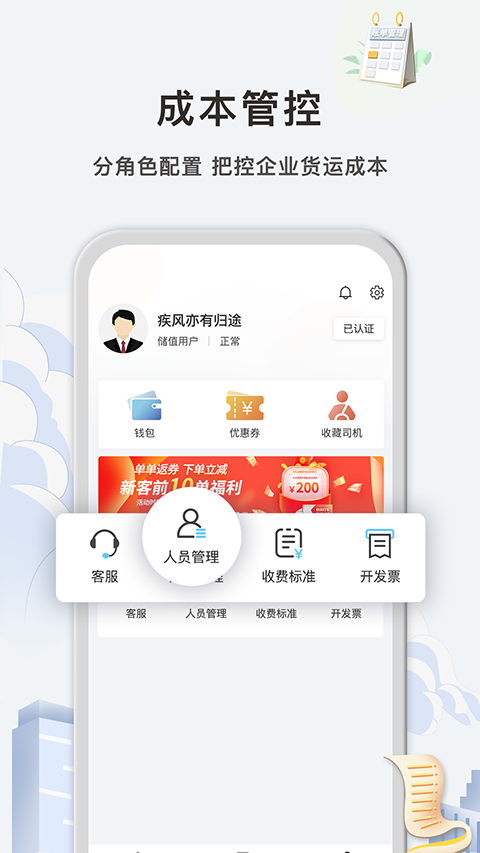 理、发票管理、员工管理、订单管理、成本管理、风险管控、司机管理等。