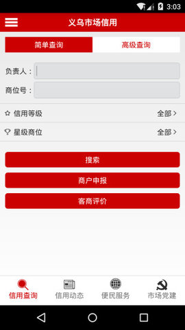 义乌市场信用APP是一款义乌市场商位信用查询软件,APP可以通过负责人、商位号查询信用情况,还可通过市场、行业、商品等类别查询信用排名,充分保障用户利益。用户在这里能够看到非常多的信息,查询具体的商户信息等。