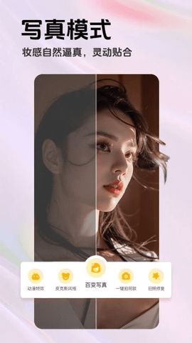 3、一键美化功能:轻松点击,立现自然美肌,让照片自然光彩。