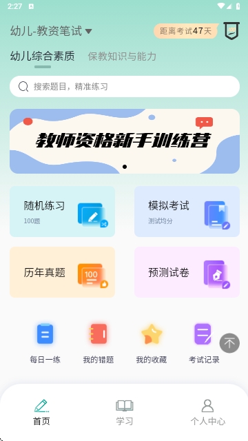 海量教资题库供用户们随时在线练习,可满足很多用户刷题备考需要。