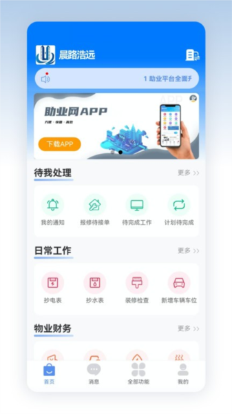 物业事务统一管理,全部的业主报事、报修和快递、投诉等可以在线管理。