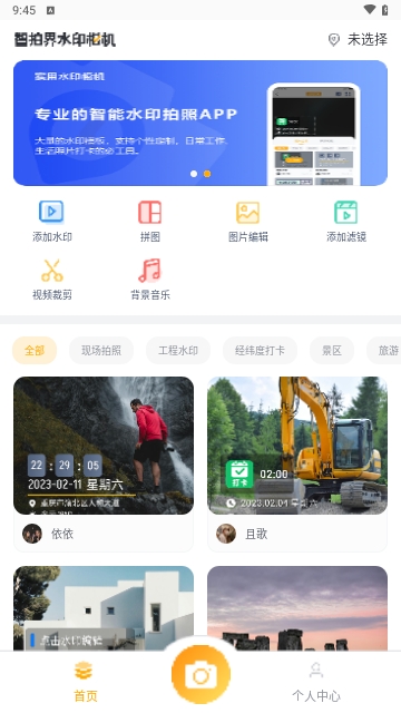 1、在软件中用户就可以快速的开启对应的水印拍照模式了,让你可以拍摄自己的水印照片;