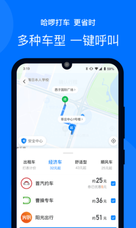 联合嘀嗒出行及首汽约车,一键呼叫出租车,快车,专车等多种车型;