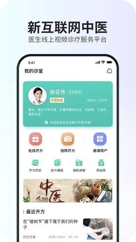 1、平台推荐用户新互联网中医:医生线上视频诊疗服务平台;