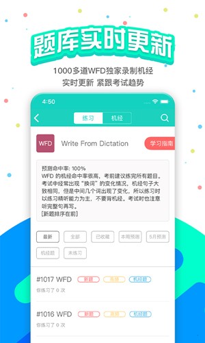 1、真题机经:PTE 考试真题机经实时更新,每周更新当周预测,命中率高达 90% 以上。