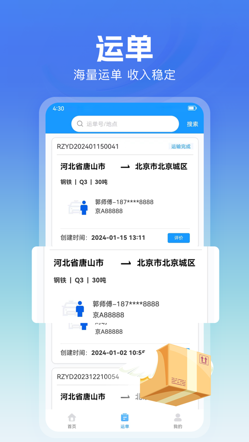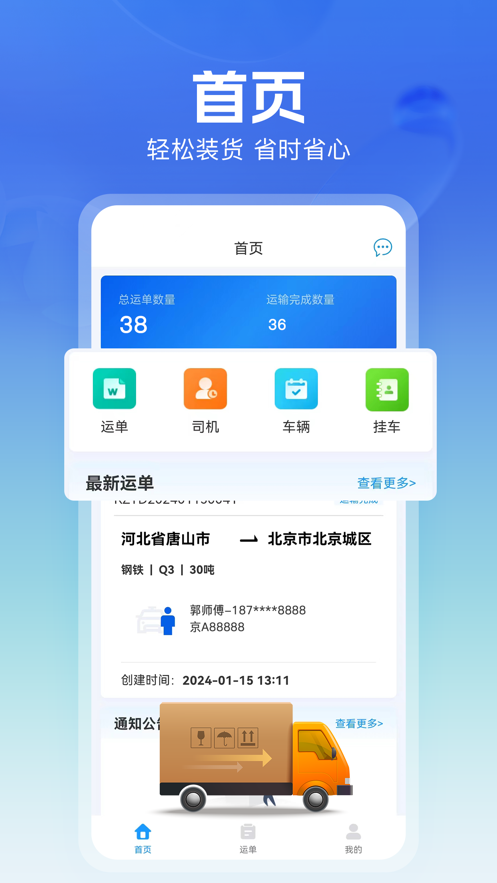免费下载 大小:59.7M 下载:1次 货车联司机端app V1.23.0 最新版 支 持:安卓 分 类:安卓软件 大 小:59.7M 版本号:v1.23.0 最新版 发 布:2025-02-21 19:48:14 手机扫码免费下载 #货车联司机端app V1.23.0 最新版简介 货车联司机端app是专为广大司机朋友制作,软件拥有海量运单,一键轻松接单找货,安全放心,可以帮助司机更好的运输赚钱,需要的朋友欢迎前来下载使用。货车联司机端app介绍:货车联平台,专业可靠,优势资源,满足客户需求,保证您的货物安全快捷到达终点,无后顾之忧。货车联司机端app特色:首页轻松装货,省时省心运单海量运单,收入稳定我的接单找货,快人一步登录找货装车,安全放心更新日志1.优化用户体验2.修复已知问题 #货车联司机端app V1.23.0 最新版截图