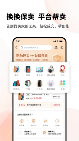 换换回收平台下载是一款专业的二手商品购物平台,主要提供数码设备,在线购买支持上货上门货到付款等方式,提供详细的设备使用详情,价格优惠保证正品,安心购物无忧,保证让你满意,快来下载吧!