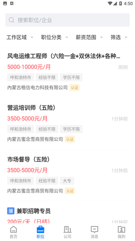 呼和浩特招聘网最新版是呼和浩特专门为广大呼和浩特求职者所打造的一款求职app。用户在这里只需登录该软件就能免费投递简历,海量岗位只等你来,相信每位用户都能找到自己心仪的工作,快来下载吧!