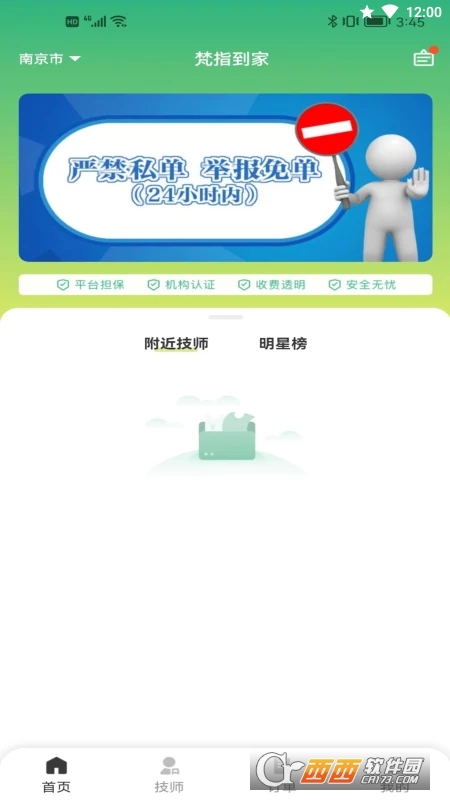 3、技师:根据地图和定位,快读找到距离近、上门快的技师,有地图模式展示和列表模式展示