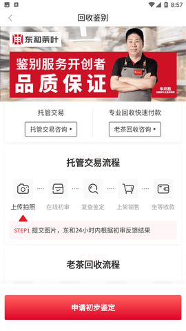 东和茶叶交易平台推出的全新的一站式托管交易服务,包含茶叶托管交易服务与茶叶质检鉴定服务,依靠东和茶叶网站海量的曝光量,为托管交易的客户提供快速、便捷的服务,让客户托管的商品快速出售。专业的茶叶质检鉴定团队,通过东和质检标准,五项仓储标准,为客户鉴定每片茶叶的真伪与仓储,24小时监控录像,专业的茶叶仓储条件,全天候智能仓库,守护商品安全与品质。保真交易,服务至上,节省您的时间成本,提供公平、便捷、安全的高端普洱茶交易平台。