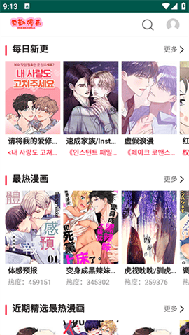 4、使用搜索功能:如果你有特定想看的漫画,可以直接在应用内搜索栏输入漫画的名称、作者或者关键词进行搜索。