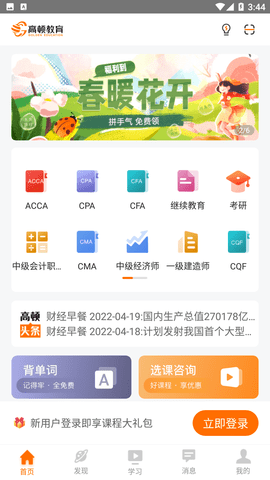 高顿网校APP最新版能够让你的学习效率提高不少,而且知识点涵盖齐全跟着学习非常有条理系统,非常好用,不但可以随时随地拿出手机进行学习节约了购买资料书籍的费用,感兴趣的千万别错过了!