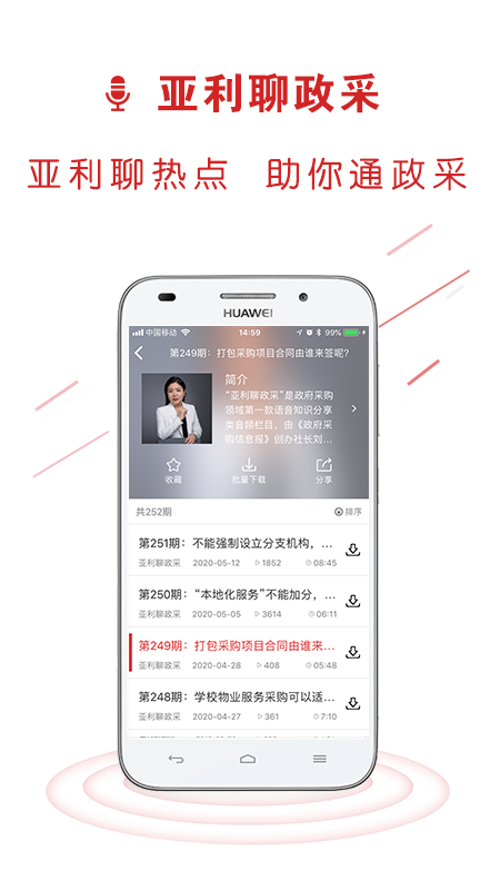 每周二收听由政府采购信息报社创办社长刘亚利,对近期政府采购领域热点问题或法规的精彩讲解。政采业界第一款音频产品。