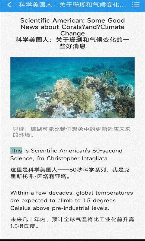1.首先在本站搜索下载双语新闻App,安装后打开应用选择一篇文章
