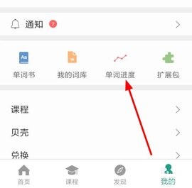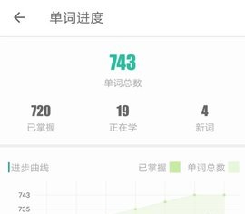 3、在单词进度的页面中,可以看到自己学过的单词总数量