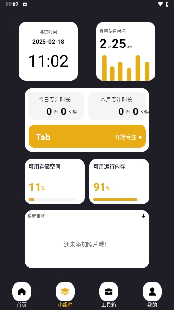 4、集成大量的小工具,涵盖时间、计时、空间存储、时间长度、提醒等。