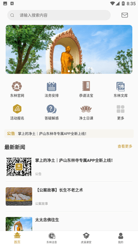 东林祖庭APP官方版是一款专门为东林少林寺提供的服务平台,里面有着许多栏目,如法务安排,供请法宝,东林文库,活动报名,答疑解惑等等,还有着虎溪课堂,随时进行直播课程,有需要的用户快来下载吧!