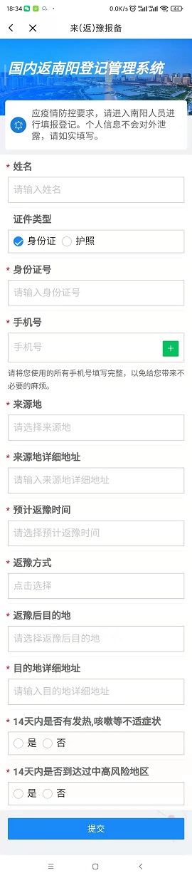 重点来了!无论是来(返)豫报备或来(返)豫货车司乘人员报备,城市选择一定要选择【南阳市】,千万不能选错。