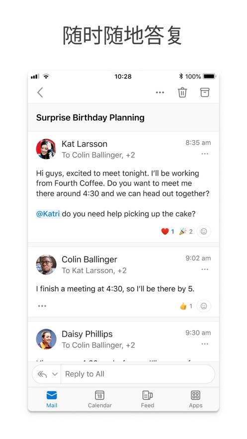 - 利用全新的搜索体验,找到所需的一切内容,包括文件、联系人和接下来的行程。