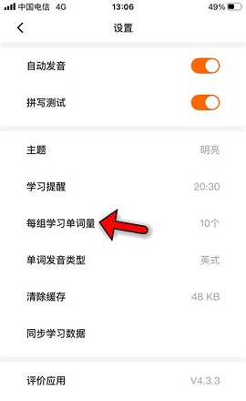 4、有三种单词量模式选择,分别是10个,15个,20个。