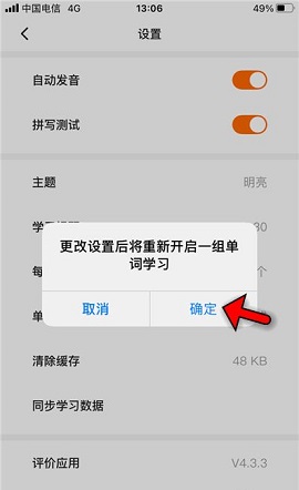 5、小窗口点击【确定】按钮,返回背单词即可。