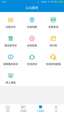 6、可以通过APP尽心纳税人服务投诉,在线咨询并查看结果,参与网上调查;