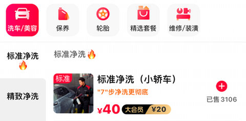 在天猫养车手机版里面,你们如果选择了一家距离你最近的店铺的话,你们就可以直接在软件里面去购买这个店的你想要去做的养护服务,比如说你们想要洗车的话,你们就直接购买【标准净洗】,就可以了。然后购买了之后其实就是可以直接去使用的。当然你们买了之后也可以是点击订单中的【待服务】去进行预约的操作。
