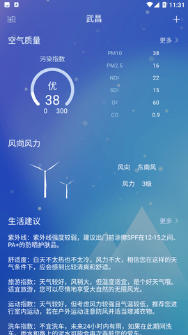 2、空气质量:提供多指数的空气质量信息,关注用户身体健康。