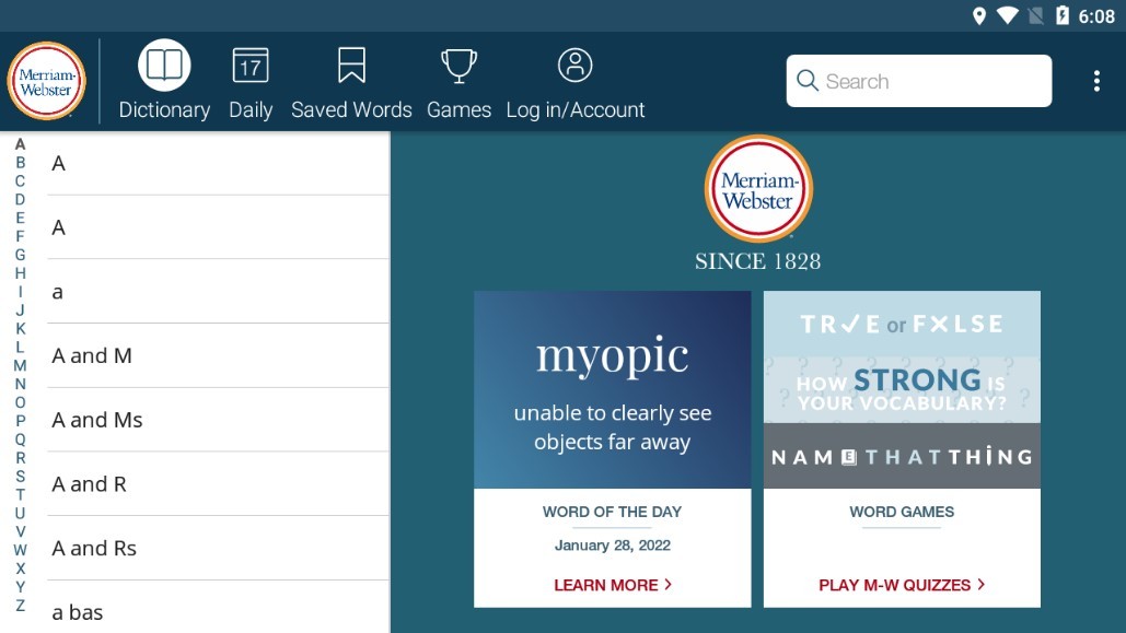 韦氏词典又叫Merriam-Webster Dictionary,是一款知名的英语学习辅助软件,手机端电子版本为广大小伙伴们提供了舒适查询服务,操作起来非常的简单轻松,这款软件功能丰富实用,内置资源都是免费的,支持在线、离线搜索获取,用户可以凭借软件自带的强大搜索引擎来为你轻松搜索到自己想要的各类学习资料,一键即可免费下载使用,使用起来也没有什么限制,为你的英语学习提供了更多便利,感兴趣的小伙伴们快来下载体验吧!