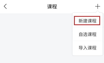 2、在课程页面中点击右上角的+按钮,点击新建课程按钮;