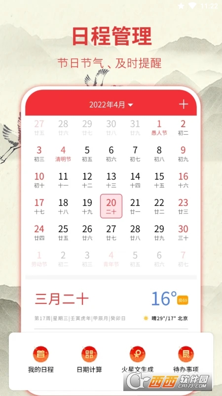 为您标注了中国传统的节假日、节气等数据,让您可以更好的计划安排自己的生活。