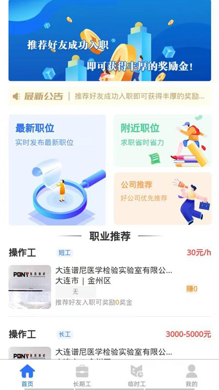 为蓝领打造工作就业平台,一键线上报名,省时省力,告别找工作东奔西跑,帮助求职者找到自己心仪的工作,更好地发挥自己的价值。