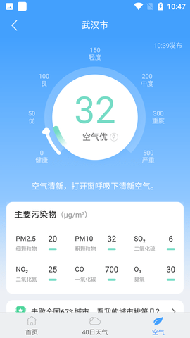 3、体贴:空气质量实时发布,自强不“吸”。