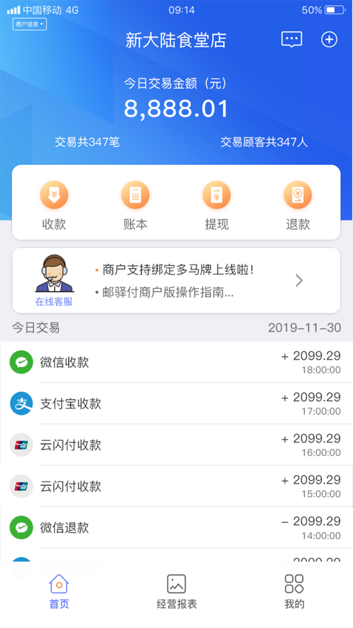 提供了收款语音播报、音箱播报、收款统计与查询的功能。