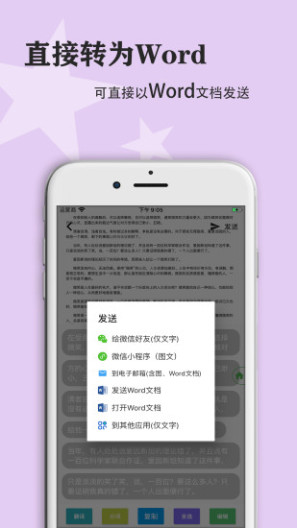 快速翻译:选中识别内容点击翻译即可翻译成多国语言