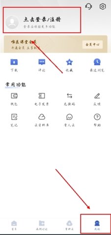 1、首先就是进入app的右下角【我的】,找到【点击登录/注册】选项进入;