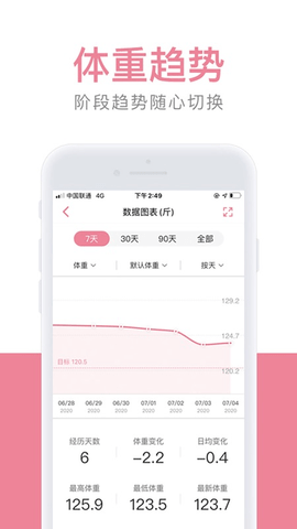 2、通过曲线的方式为您呈现体重数据变化情况;