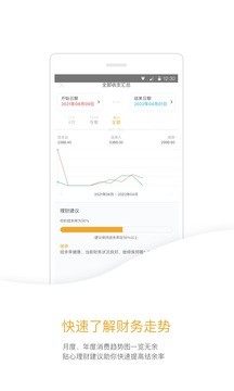 2、清晰的财务走势图,提供全部支出汇总曲线,快速了解消费情况;