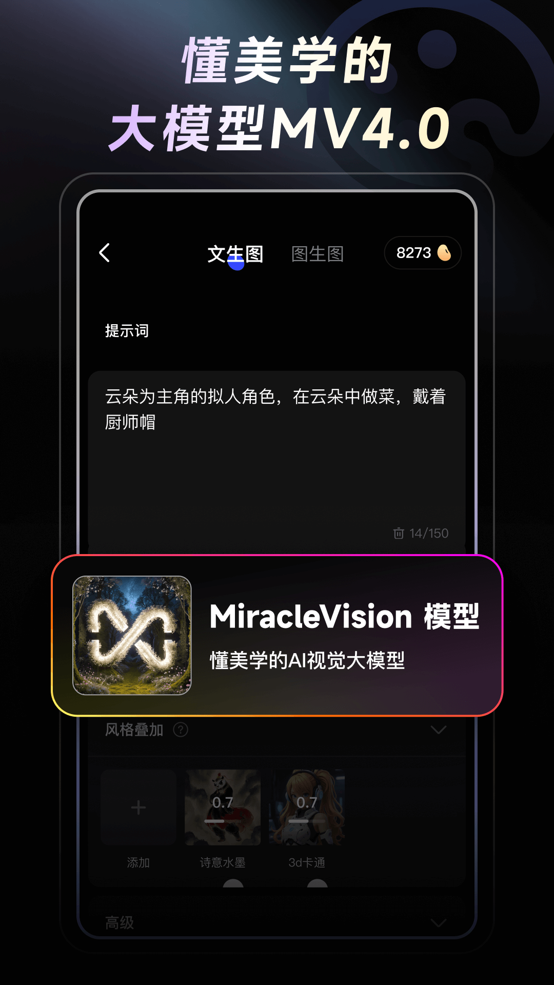 6、【Miracle Vision】视觉大模型MiracleVision4.0惊艳上线!该版本进一步降低了用户使用门槛,同时增强可控性和准确性.只需简单写几个词,就可以进行自动补充.生图更轻松、出图更专业、改图更准确.