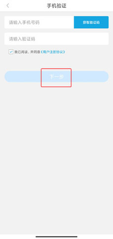 3、输入手机号和验证码,点击下一步按钮;