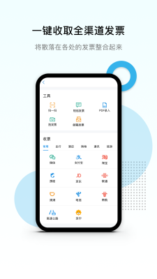 1、发票收集:提供专用发票邮箱直接收取商家开具的电子发票;一键收集微信卡包、支付宝卡包的电子发票;PDF文件链接直接收入票税宝;更支持从个人邮箱、电商应用、差旅应用导入发票