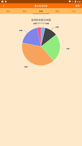 全国重名查询系统官网版是一个可以查询到全国的一个名字的重复度的好玩的平台哦!而且各种的在各类应用平台内都能使用哦,可以快速的帮您查询到与你名字相同的用户,可以看到同省份的一些名字的信息,个各地的信息都是可以查找到的!能更好的避免取名的一个重复。想知道有多少用户与你拥有着一样的名字,就可以在这里只需要进行系统平台内输入你的名字,然后点击就能查询到了。