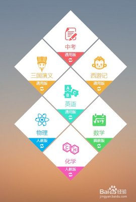 进入之后,我的这里是初中,所以页面显示的有七个板块,看见了每个版块下面都一个倒三角,上面显示了通用版、人教版,等等。