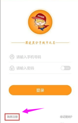 2、下载完成后,在登录界面中,点击左下角的跑腿注册选项。