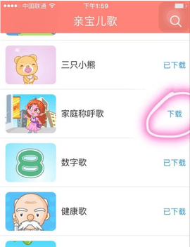第一步:在本页面搜索“亲宝儿歌”,安装应用程序。